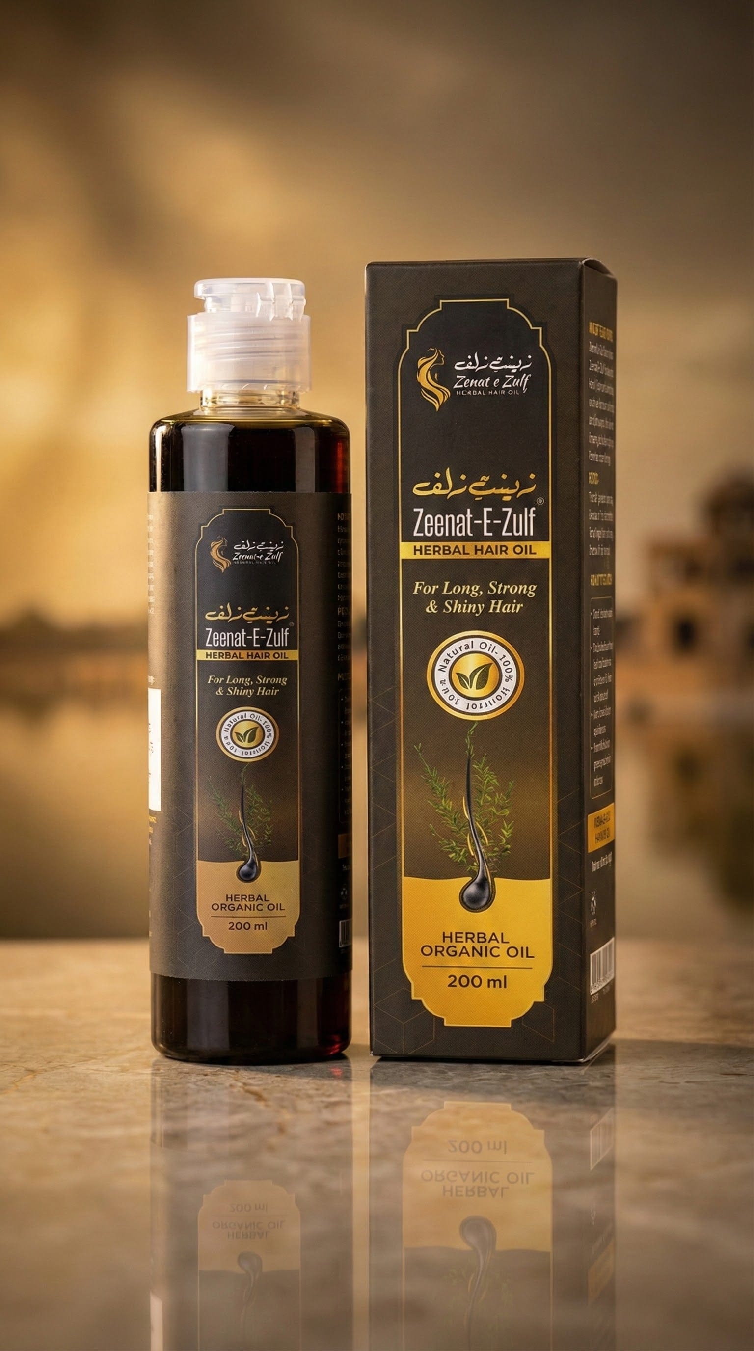 Unlock the secret to naturally beautiful hair with Zeenat-e-Zulf Herbal Hair Oil.